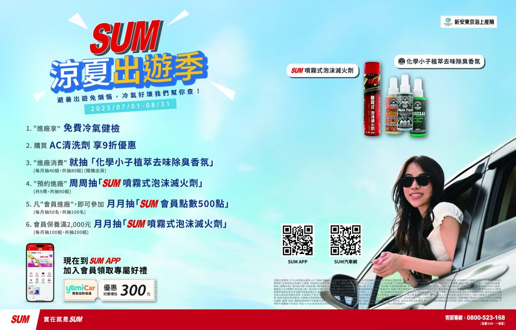 SUM「涼夏出遊季」活動 守護您的愛車