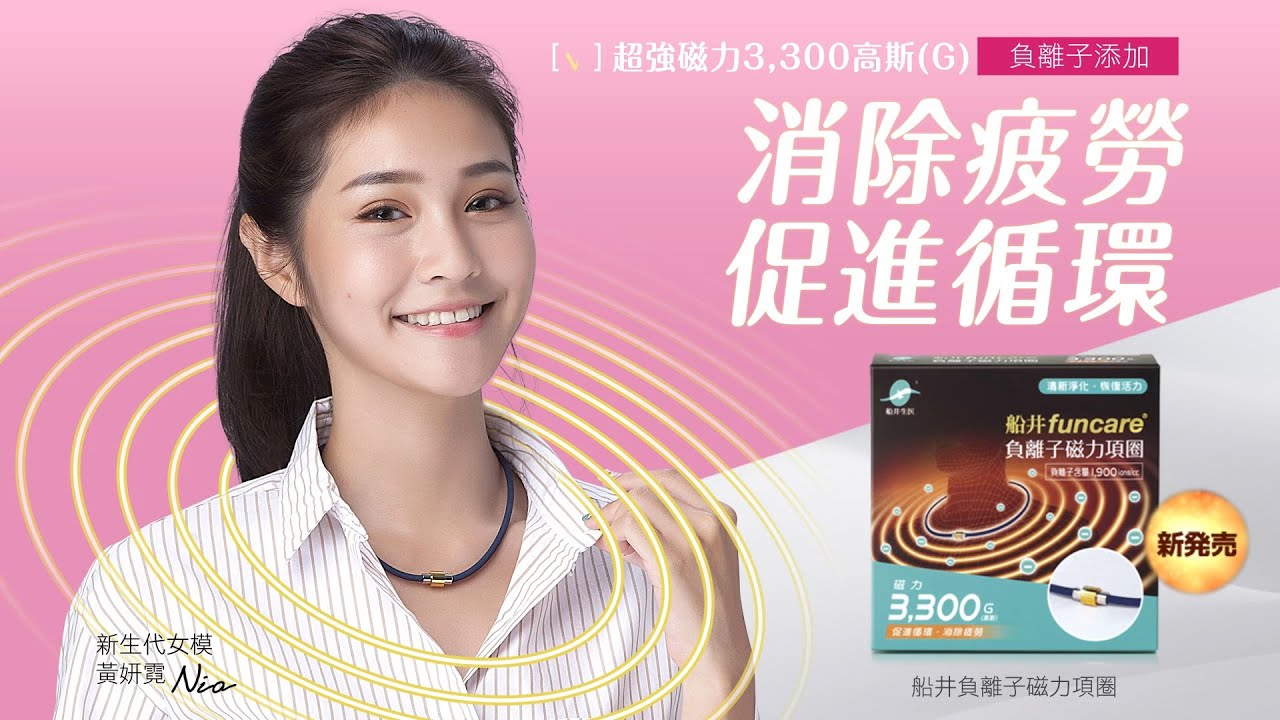 船井 船井負離子磁力項圈新生代女模黃妍霓推薦篇超強磁力3300高斯促進循環消除疲勞不適