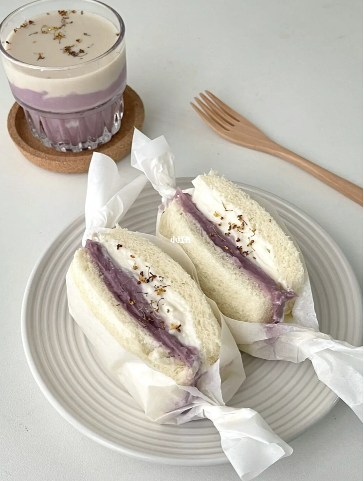 Share Facebook Twitter LinkedIn Pinterest Email 高顏值的芋泥三明治來囉❗️紫色真是太美啦~做好早餐都不捨得吃~心情都有變好鬆軟酸甜又綿密的口感真的是愛了呀 圖源@小紅書 楊发发cc . 🍽食材準備 芋頭|紫薯|吐司片|牛奶少許|代糖|優格|桂花碎 👩🏻🍳做法 蒸熟芋頭和紫薯後,➕一點牛奶和代糖打成泥狀兩片吐司切掉邊邊~一片抹芋泥,一片抹優格,用稍微厚重一點的希臘式優格哦~不會流的哪種合在一起包起來,再撒點桂花碎就ok了 低糖低油 健康美食 早餐 減脂早餐