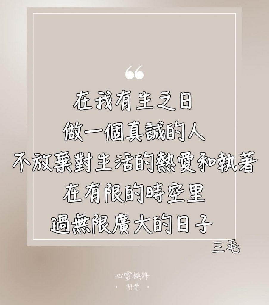 Share Facebook Twitter LinkedIn Pinterest Email 2022.0511 #活著 在我有生之日 做一個真誠的人 不放棄對生活的熱愛和執著 在有限的時空裡 過無限廣大的日子 #三毛 #心靈機鋒 #誾覺 2022.0511 #活著 在我有生之日 做一個真誠的人 不放棄對生活的熱愛和執著 在有限的時空裡 過無限廣大的日子 #三毛 #心靈機鋒 #誾覺 A photo posted by 心靈機鋒 (@artemis.202088) on 2022-05-11 03:11:16 心靈機鋒 三毛 心靈機鋒 活著 誾覺