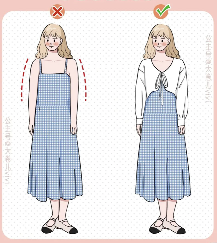 Share Facebook Twitter LinkedIn Pinterest Email 對於手臂粗的女生來說,夏天穿衣服真的太難了!但只要穿對衣服,不管你粗哪裡,都是可以修飾的,今天就來分享一些非常實用的穿搭小知識~ 1、吊帶直筒裙不僅放大腰圍,還顯胳膊粗。 圖源@小紅書 黎安很咸 2、緊身上衣穿上就是金剛芭比。 圖源@小紅書 黎安很咸 3、迷你短袖妥妥暴露肱二頭肌。 圖源@小紅書 黎安很咸 4、飛袖、插肩袖都會增加肩寬。 圖源@小紅書 黎安很咸 5、一字肩雖美,但肩頸缺陷展露無遺。 圖源@小紅書 黎安很咸 6、清涼吊帶設計得不好,還會生生卡出副乳! 圖源@小紅書 黎安很咸 2022 穿搭 春夏穿搭 穿搭 穿搭分享 穿搭推薦 穿搭教學