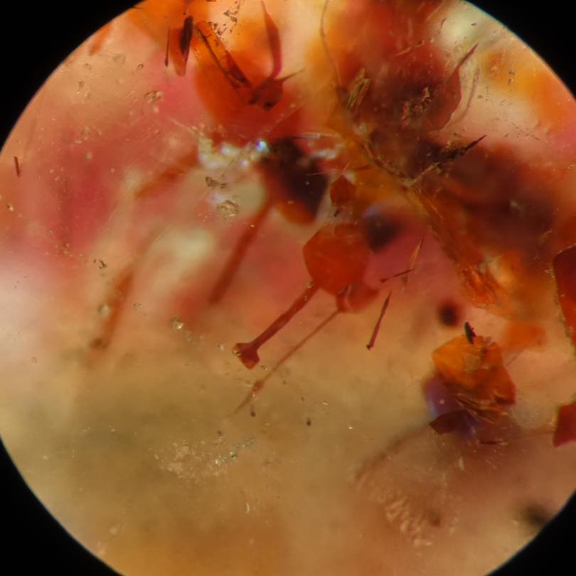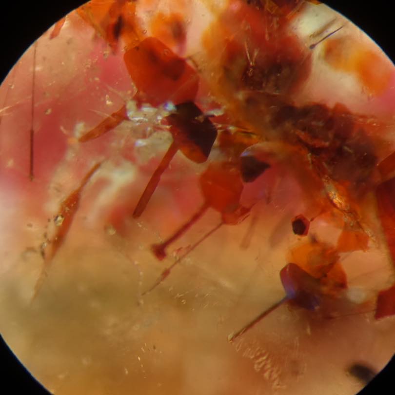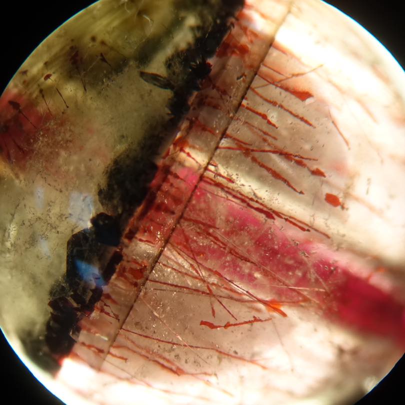 今天附上水晶內部含形態各異的氧化鐵礦物,如赤鐵礦。