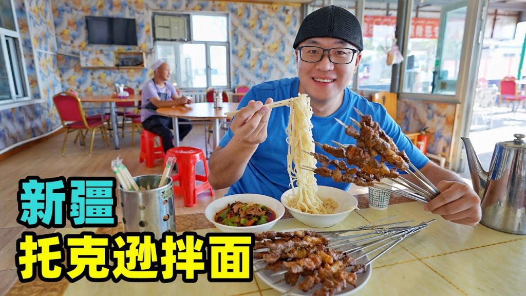 新疆的托克遜最有名的就是拌麵,托克遜拌麵被稱作是新疆第一面,筋道又有嚼頭的拉條子拌麵是當地人的驕傲。不僅在縣城裡有很多麵館,在高速服務區也有拌麵一條街,以數字作為招牌的麵館是這裡獨特的風景。阿星開車2個小時穿越沙漠大山,只為品嚐一碗美味的過油肉拌麵,爽滑筋道的麵條很美味。 Tuokexun in Xinjiang is most famous for its noodle. Tuokexun noodle is called the first noodle in Xinjiang. The chewy noodle is the pride of the locals. Not only are there many noodle restaurants in the county town, but there is also a noodle street in the high-speed service area. The noodle restaurant with numbers as its signboard is a unique scenery here. Axing drove 2 hours across the desert mountains, just to taste a bowl of delicious noodle with oily meat. The smooth and chewy noodle is delicious.