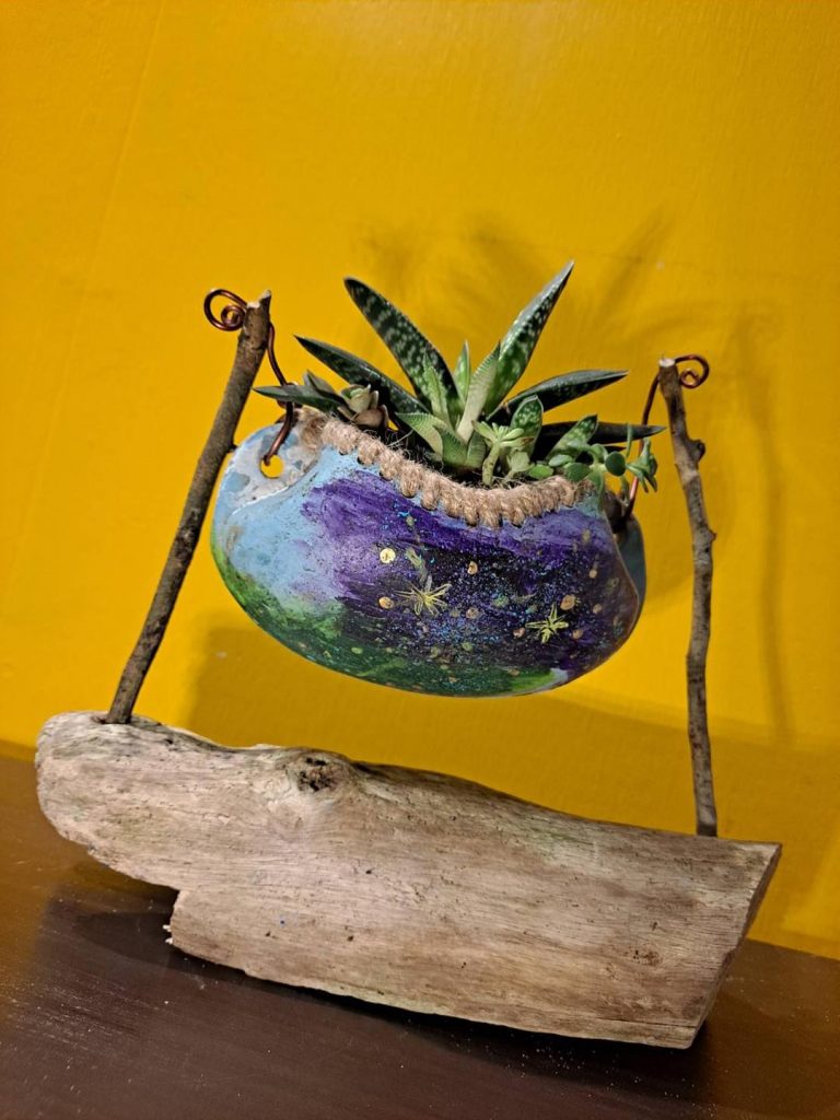 使用壓克力顏料彩繪加工後成為療癒的小盆栽。