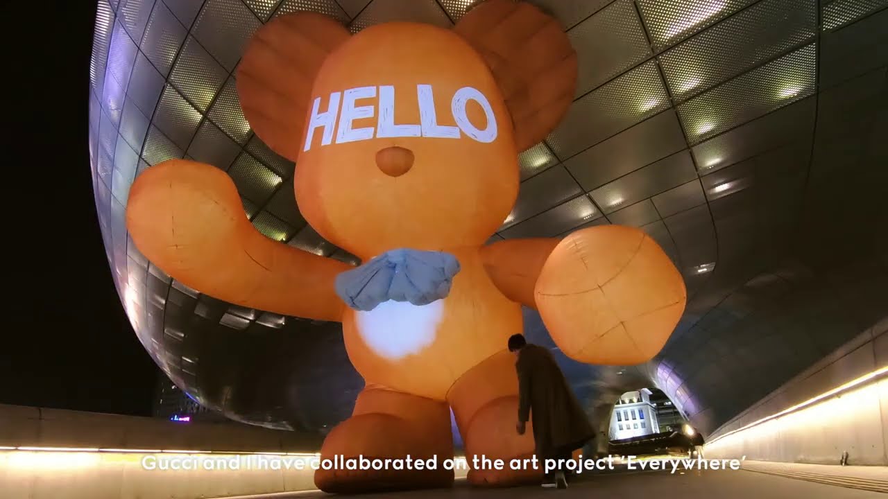 為慶祝即將推出的 KAI x Gucci 系列,首爾流行藝術家 IM Jibin 設計了大型熊氣球。 與 Jibin 的許多藝術作品一樣,這些熊的臉上都有一個詞來傳播信息——在本例中是“HELLO”,這是一個簡單、友好的問候,慶祝個人聯繫的樂趣。 Gucci Bear Balloons 是 Jibin 的“無處不在”項目的後續,並出現在首爾清潭 Gucci 商店、漢南現代卡片音樂圖書館前和 Cociety Gucci Pin 中。