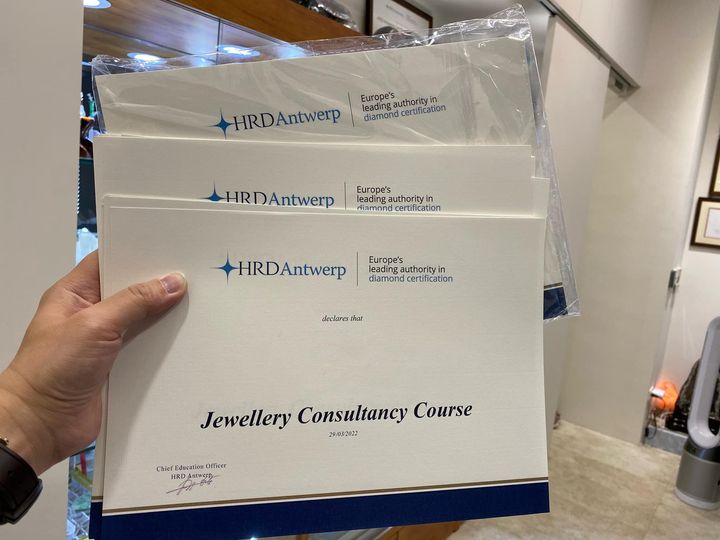 HRD珠寶銷售證書從比利時🇧🇪寄來了。 同學們有空來自取唷 恭喜成為一名珠寶銷售顧問。