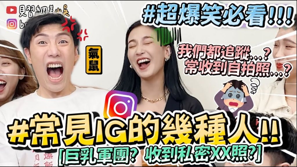 相信現在不論說是Facebook或是IG 大家應該都有在使用對吧😉 那你一定不陌生我們今天統整的『IG幾種人』 收過奇怪的留言….奇怪的照片…… 還有現在當紅的巨乳軍團😂?????? 快來看看還有什麼超好笑的事吧XD 把影片分享給你的朋友,看他中幾個❗️ #Instagram #IG #IG幾種人#IG各種人#小吳IG ►【訂閱YouTube頻道: goo.gl/qZbiUb】 ►【追蹤Instagram : http://goo.gl/29cDAv】