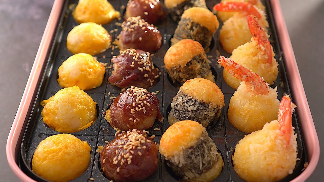 📌富力森FURIMORI 多功能創意料理爐(櫻花粉) 按這裡→ https://lihi1.cc/pvomb 材料A 白飯steamed rice B 帶尾蝦仁peeled shrimp 蛋液beaten eggs 麵包粉breadcrumbs C 海苔片蛋液beaten eggs 麵包粉breadcrumbs D 豬肉片pork slices 燒肉醬yakiniku sauce 白芝麻white sesame E 蛋液beaten eggs 作法1.取約一口大小的白飯,包入帶尾蝦仁捏成小飯糰,讓蝦尾露出。 2.再將小飯糰依序沾裹上材料B的蛋液與麵包粉,即成炸蝦飯糰。 3.取約一口大小白飯捏成橢圓形,再將飯糰依序沾裹上材料C的蛋液與麵包粉,即成海苔飯糰。 4.取約一口大小的白飯捏成丸子狀,取材料D的豬肉片將飯丸子包裹起來,即成燒肉飯糰。 5.取約一口大小的白飯捏成丸子狀備用。 6.將所有準備好的飯糰放入烤盤中,炸蝦飯糰與海苔飯糰倒點油,燒肉飯糰與蛋包飯糰不倒油。 7.以中火加熱飯糰至香脆上色,在燒肉飯糰上加入材料D的燒肉醬燒入味,並撒上白芝麻。 8.再將材料E的蛋液倒入白飯糰上,均勻裹上即成蛋包飯糰。 – 楊桃美食網http://www.ytower.com.tw Youtube https://www.youtube.com/user/ytower01 Facebook https://www.facebook.com/ytower01