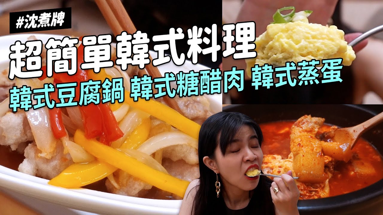 一集三韓料,做好做滿做到哭就是我, 不出錯的原因就是我都先幫你們錯起來。這樣你們就不會感到氣餒惹! ! ! ! 03:20韓式蒸蛋: ✿材料:雞蛋、水、鹽巴、糖、蔥花、香油。雞蛋跟水的比例是1:1(如果水多一點蛋會比較軟,但比較不澎)。 1.水滾後將雞蛋倒入,倒完後關中火攪拌他們。 2.等到邊緣開始出現凝固後開始用湯匙刮下邊緣的蛋跟翻動。 3.蛋漸漸凝固到70%時,加上蔥花、芝麻、香油蓋起來轉小火三分鐘後便可打開食用。 \☆\★/☆\★/☆\★/☆\★/☆\★/☆\★/\☆\★/☆\★/☆\★/☆\★/ 05:24韓式豆腐鍋: ✿鍋底材料: 蔥+蒜、豬肉末150g、醬油50cc、 糖25g、韓國粗辣椒粉120g 、香油1. 油熱後加入蔥蒜拌炒,出現香味後放入豬肉。 2. 豬肉9成熟後加醬油、糖、粗辣椒粉,炒到醬油收乾後即可。 3. 關火後加入香油攪拌均勻。 4.可分裝成小份以利之後可以分天吃。 ✿辣豬肉豆腐鍋: 熱水加豬肉、豆腐後再加入前面的鍋底,打顆蛋慢慢調味煮滾後可食用。 \☆\★/☆\★/☆\★/☆\★/☆\★/☆\★/\☆\★/☆\★/☆\★/☆\★/ 07:48韓式糖醋肉: ✿豬肉250克、胡椒粉、洋蔥甜椒蔬菜適量✿裹粉:地瓜粉30克、水160ml、玉米粉20克✿醬料:水280ml、醬油25克、糖100克、白醋45克、番茄醬40克1.將豬肉撒上胡椒抓醃一下。 2.建議先炒醬,醬料區的東西在鍋內煮滾後,加入少許的玉米粉水勾芡。 (蔬菜可以自由選擇要加到醬裡面煮或是先炒熟比較香) 3.將地瓜粉加入水後讓地瓜粉沈澱把多餘的水倒掉,再加入玉米粉。 4.準備油鍋開中火炸肉,炸完一次先撈起讓油溫再升高一點後二炸。 5.撈起將前面的菜醬跟肉放在一起即可。 \☆\★/☆\★/☆\★/☆\★/☆\★/☆\★/\☆\★/☆\★/☆\★/☆\★/ 現在到711就能買到兩口味我都很愛的纖果食感, 7/14-7/27買一送一8/11-8/24兩件$40 我是吃什麼都能配,早中晚都沒問題的那種!沒喝過的可以試試看,也歡迎大家與沈同行韓式料理動手做! #統一纖果食感#Fresh的酸甜歡迎品牌有合作需求寄信至:playwithshenwork@gmail.com 陪沈團臉書:https://www.facebook.com/play.with.shen 陪沈團PODCAST:https://linktr.ee/100pashen 本頻道為個人經營,不隸屬於任何MCN旗下。