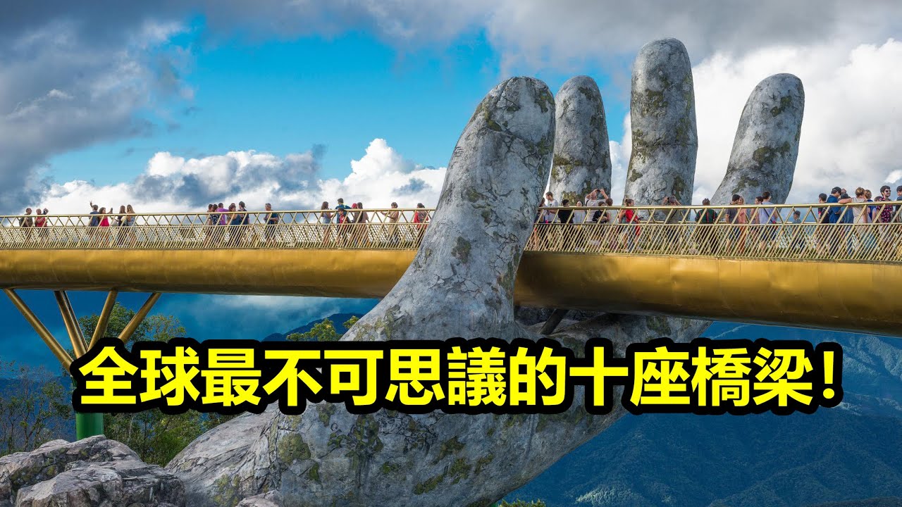 @世界之最#不可思議的十座橋梁0:00 前言0:25 第十名:螺旋橋(新加坡)Helix Bridge 1:13 第九名:蓋茨黑德千禧橋(英國)Gateshead Millennium Bridge 2:01 第八名:如意橋(中國)Ruyi Bridge 2:34 第七名:盤浦大橋(韓國)Banpo Bridge 3:15 第六名:金橋(越南)Golden Bridge 3:56 第五名:班德拉-沃利海上通道(孟買)Bandra – Warli Sea Link 4:37 第四名:張家界天門山玻璃棧道(中國)Zhangjiajie Glass Bridge 5:30 第三名: “扭橋” 美術館(挪威)The Twist 6:11 第二名:馬格德堡水橋(德國)Magdeburg Water Bridge 7:16 第一名:維盧韋米爾水道橋(荷蘭)Veluwemeer Aqueduct 為大家帶來生活資訊,讓忙碌的生活中,能了解更多資訊今天起就開始訂閱我的頻道吧! https://www.youtube.com/channel/UCDxglJgxgT02aG2rp1yv7Pw 您的訂閱是對小編我最大的支持與鼓勵!