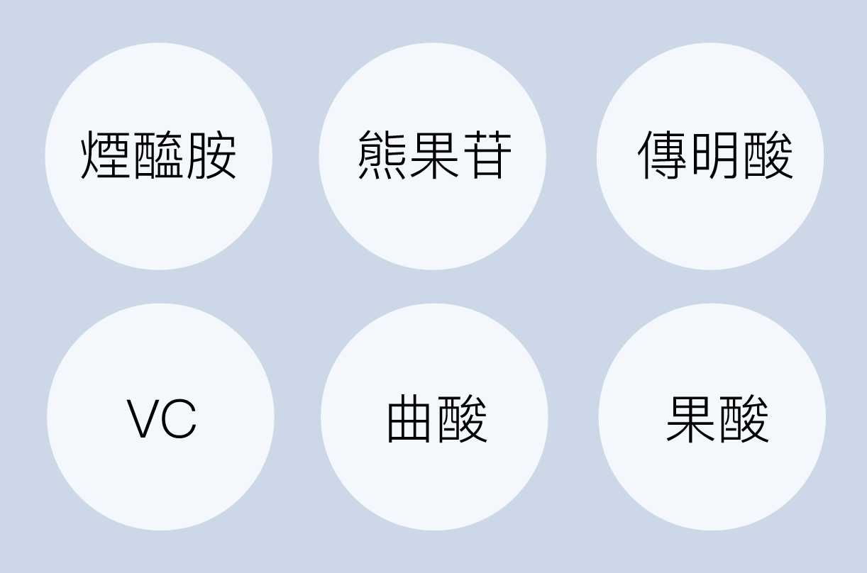 這個是老網紅了。VC的抗氧化能力強,可以抑制黑色素的氧化反應。但它的缺點就是穩定性比較差,需要避光使用。當然最近也有VC的衍生物來解決穩定性差的問題。