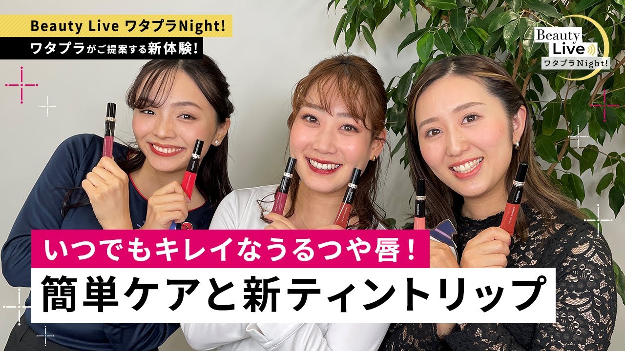 10/21 Beauty Live ワタプラNight! 今回は「いつでもキレイなうるつや唇!簡単ケアと新ティントリップ 」✨ 本日発売、 …