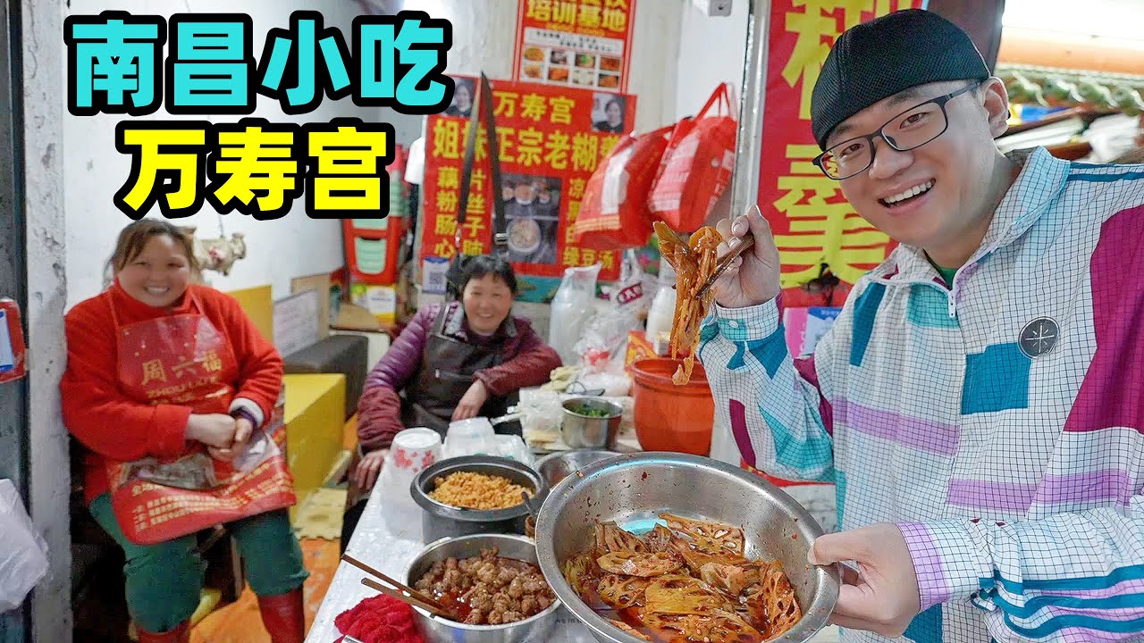 江西南昌的萬壽宮不僅僅是廟會,這裡的街區隱藏了南昌眾多小吃,很多人從小吃到大的美食。阿星走街串巷吃小吃,刷醬臭豆腐,辣鹵的蓮菜,麻辣腸結,寓意吉祥的糊羹,油炸煎餅,大鍋水煮,還有江西必吃的瓦罐湯,都是地道的南昌美味。 The Wanshou Palace in Nanchang, Jiangxi province is not only a temple fair, but many snacks in Nanchang are hidden in the blocks here. Axing walks the streets and alleys to eat snacks, stinky tofu with soy sauce, spicy braised lotus vegetables, and spicy Changjie, the auspicious Hugeng, deep-fried pancake, big pot Shuizhu, there is also a must-eat crock soup in Jiangxi, all of which are authentic Nanchang delicacies.