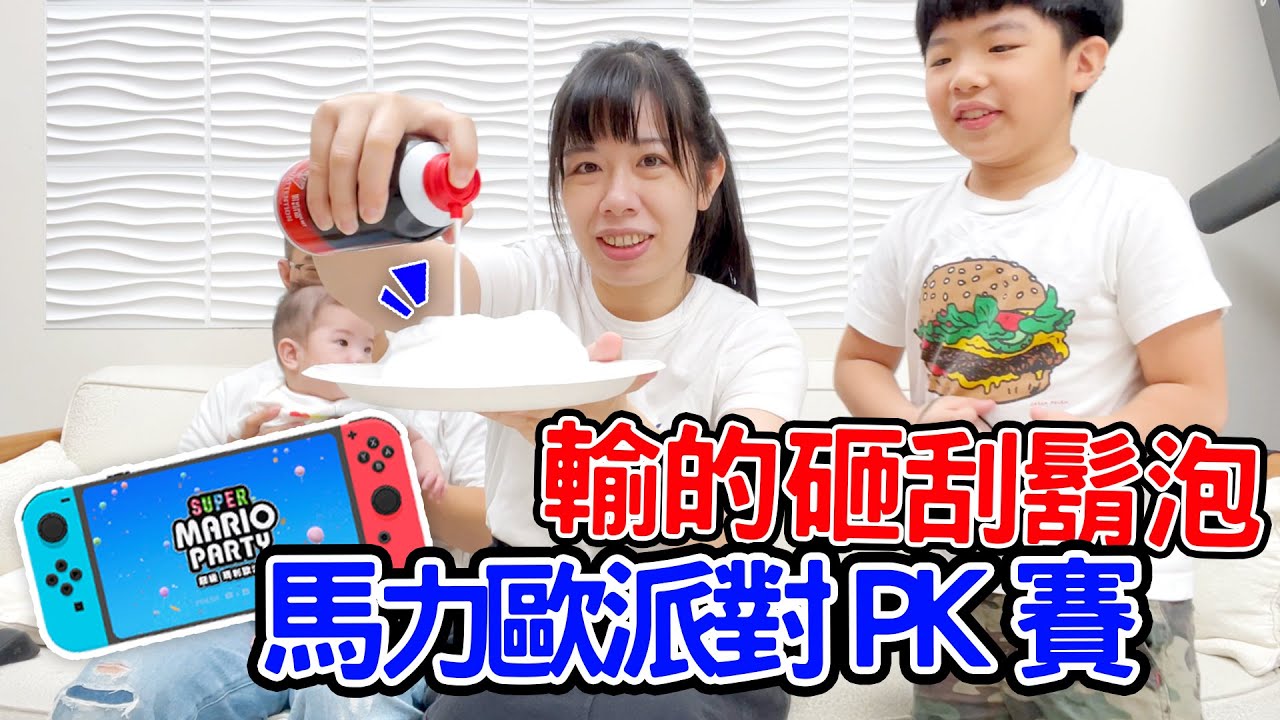 上一次影片是不是 魷魚遊戲 輸的人刮鬍泡砸 這一次為什麼又是瑪利歐派對要來 輸的人要來砸刮鬍泡