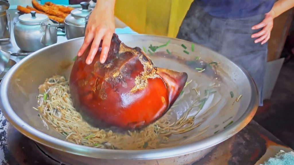 Oysters Fried Noodles with Horseshoe Crab Shell,Handmade Pork Meatballs,Fried Braised Pork/鱟殼炒蚵仔麵,手工貢丸,燒肉 – Taiwanese Street Food