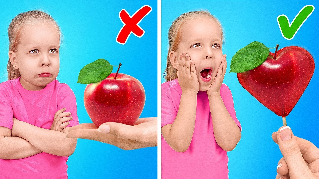 嗨,各位聰明家長 🙂 我們今天要給你看許多日常生活的實用妙招與DIY點子。假如你不想幫孩子煮飯,以下就是給你的神奇指南!這裡許多食譜超簡單,連你的小孩都能做。把漿果和莓果放進小袋優格,放一根棒棒糖進去,全部冷凍起來,你就會有內含驚喜的健康版冰淇淋 😉 如果你的小孩喜愛嘗試新東西,讓他們跟你一起煮。你們可以做超簡單的西瓜蛋糕並在上面添加各種水果、漿果、糖漿。讓小孩覺得自己在參加超夯的烹飪節目,協助他們激發創造力與烹飪技巧!繼續觀賞,看看如何炸蘋果甜甜圈、用水果作速食、Pop-it巧克力棒、彩虹蛋糕與更多獨特的食譜,讓孩子驚喜一下!