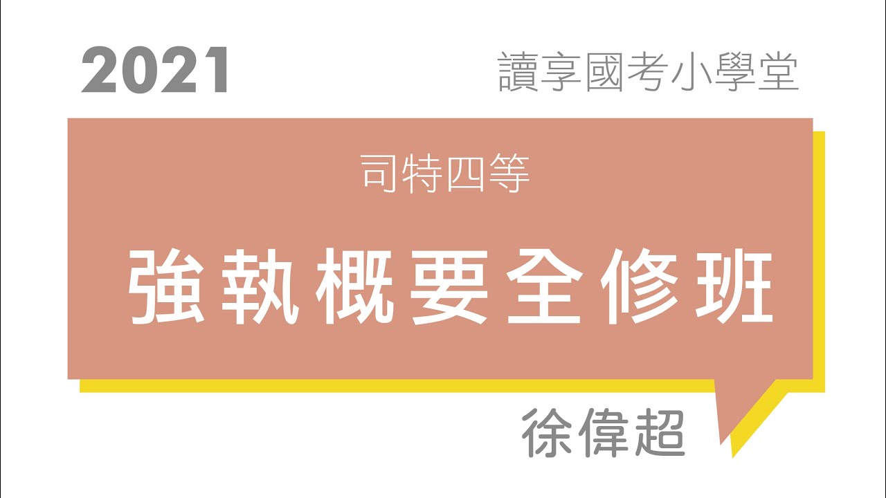 讀享國考小學堂2021【司特四等】徐偉超的強制執行法概要全修班第1堂