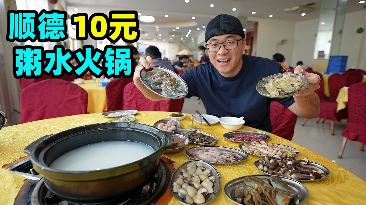 順德粥水火鍋,大米稀飯做湯底,海鮮10元一份,阿星品嚐廣東鮮味Rice porridge hot pot in Shunde