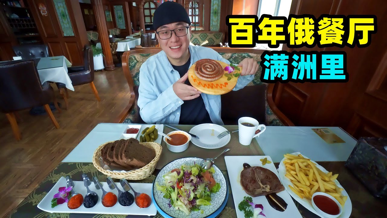 內蒙古的滿洲里位於中俄交界的邊境上,這裡自古深受俄羅斯文化的影響,有很多正宗的俄餐廳。很有名的滿洲里飯店,據說有100多年曆史,80年代經過翻新重建,百年間見證了兩次世界大戰,也見證了俄羅斯飲食文化在滿洲里的變遷。阿星品嚐色彩鮮豔,重油多肉食的俄餐,1米長的俄式盤腸,鹹香的魚子醬,黑色的俄羅斯列巴,體驗俄餐文化。 Manzhouli in Nei Mongolia is located on the border between China and Russia. It has been deeply influenced by Russian culture since ancient times and has many authentic Russian restaurants. The well-known Manzhouli Restaurant is said to have a history of more than 100 years. It was renovated and reconstructed in the 1980s. It has witnessed two world wars and the changes of Russian food culture in Manzhouli. Axing tasted colorful, heavy oil and meaty Russian food, 1 meter long Russian sausage, salty caviar, black Russian Leba, and experienced Russian food culture.