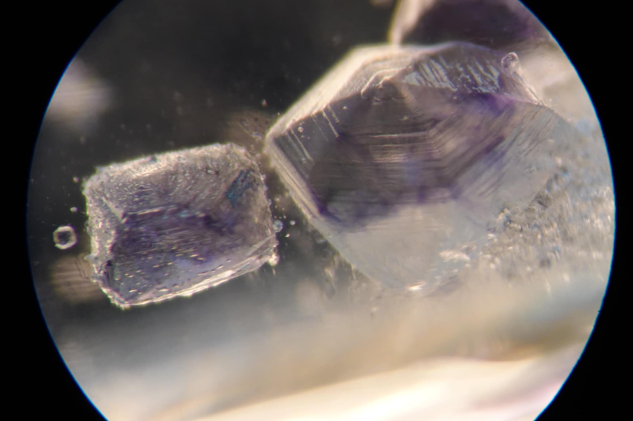 Share Facebook Twitter LinkedIn Pinterest Email 今天檢測來自馬達加斯加的水晶,發現了可愛螢石包裹體。 螢石為立方(等軸)晶系,自然界中螢石的單晶主要為立方體,少數為八面體、菱形十二面體,集合體為粒狀、晶簇狀、條帶狀、塊狀等。 自然界螢石的八面體極為罕見,一般多是人工沿解理面敲打劈裂而成。 但是在內含物世界可以一睹其芳容非常喜悅。 你覺得它們像什麼? #螢石 #水晶 #馬達加斯加 閱讀更多