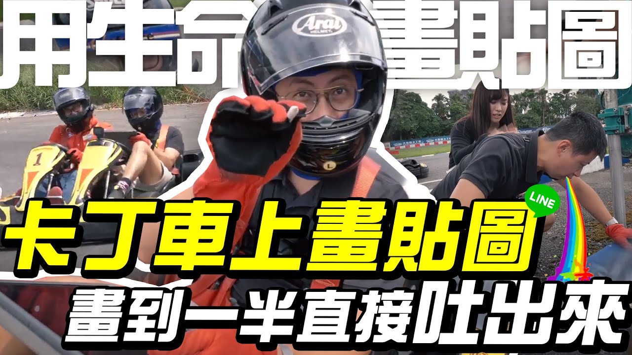 用生命畫貼圖!在卡丁車上畫LINE貼圖,畫到一半直接吐了出來!